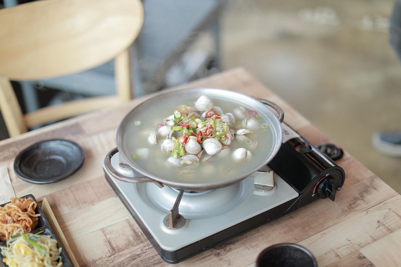 4. 육수가 끓으면 새조개를 넣고 5~10초 정도 살짝 데쳐 바로 건져냅니다.
