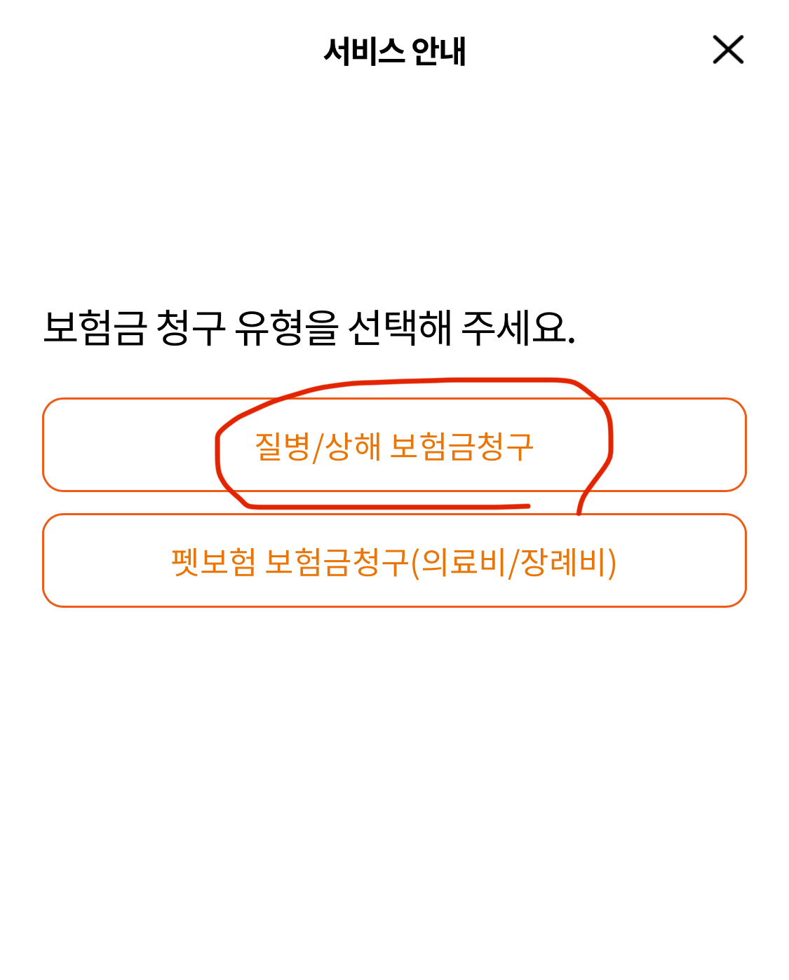 2. 어떤 보험금 청구 유형인지 상황에 맞춰 선택해주세요.