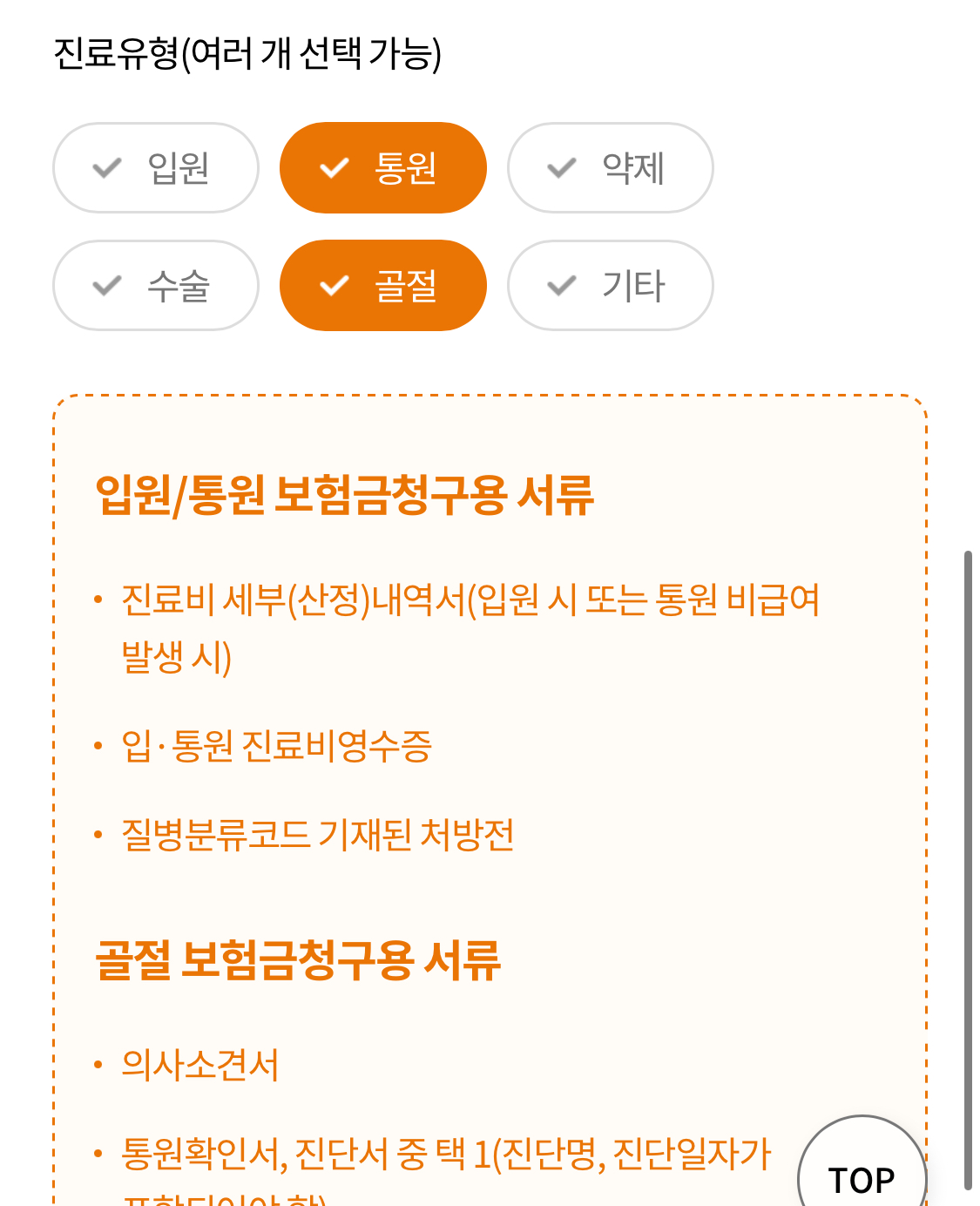 저는 통원 치료이며, 골절이기도 해서 두가지를 선택해줬습니다.