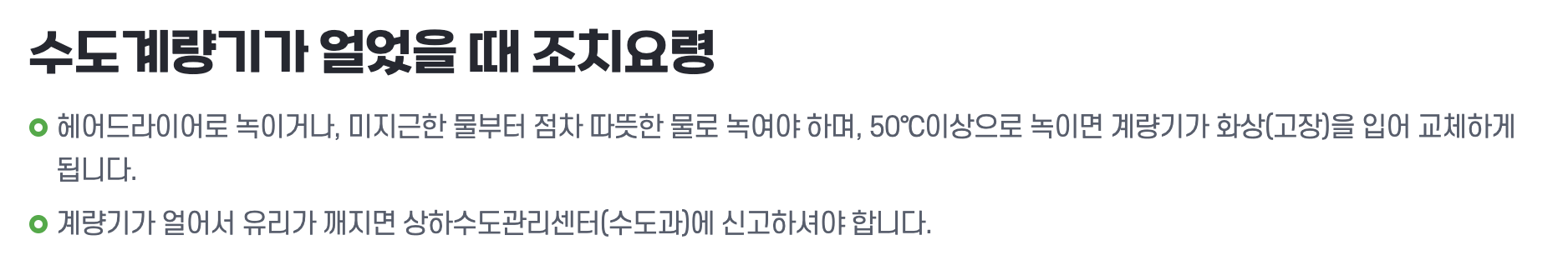 수도계량기 동파시 대처 방법