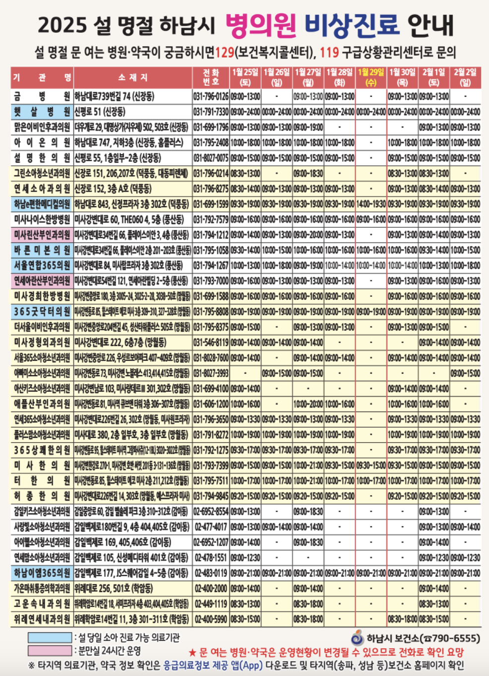 하남 병원 약국 설연휴 진료 가능한곳