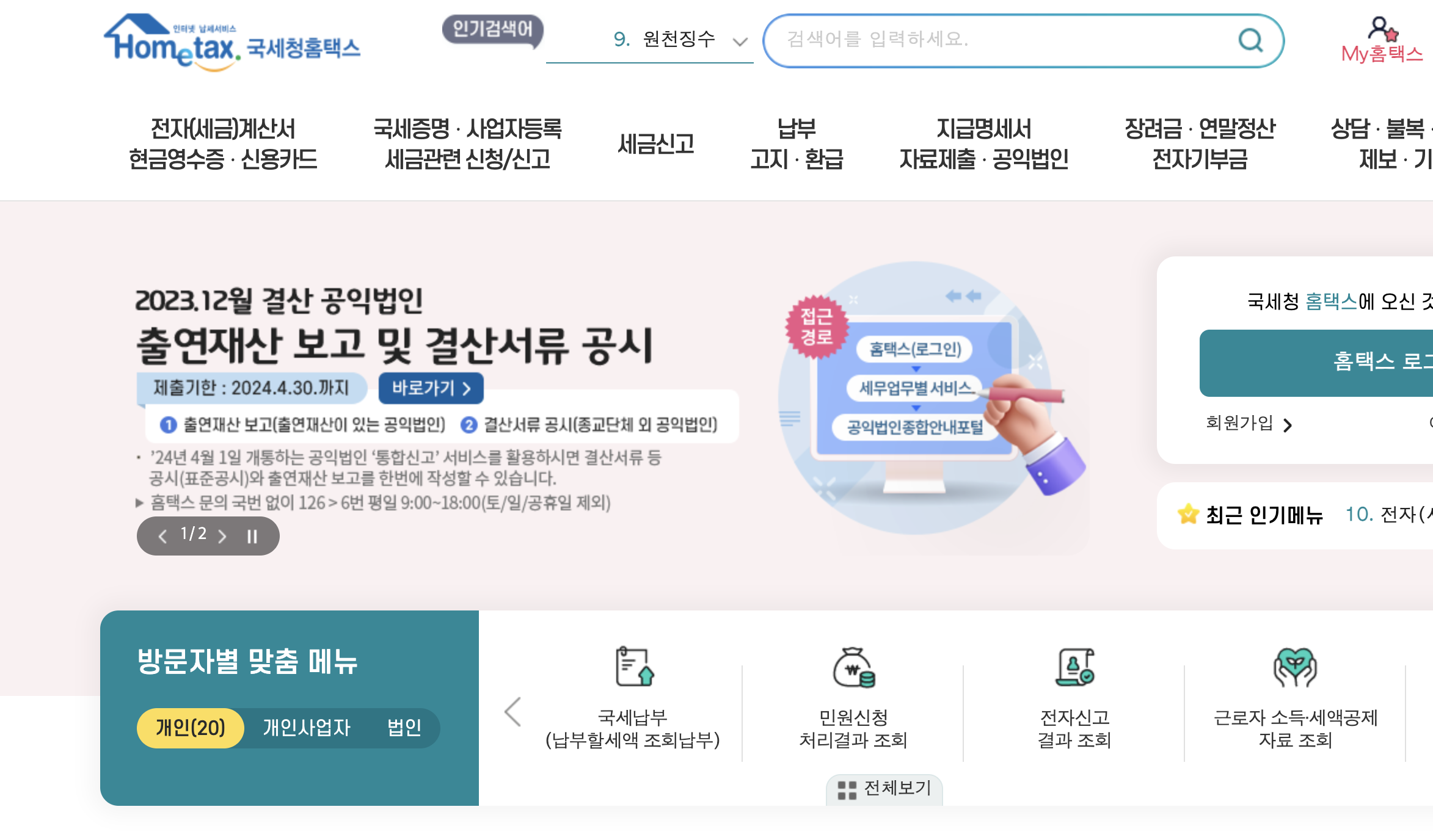 홈택스 메인화면에서 종합 소득세 메뉴에 들어가면 됩니다.